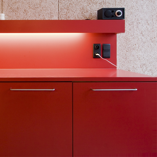 The two-storey high steel framework can be opened entirely thus connecting the living room completely to the city garden.