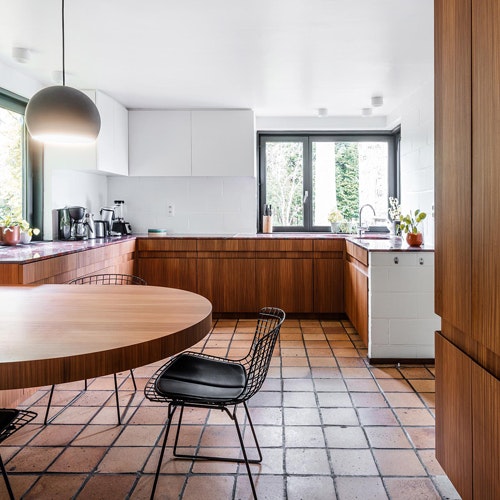The house, containing a doctor's surgery, is situated on a natural slope. Without altering the footprint and the view from the street, the living area at the higher garden-level has been thoroughly overhauled.